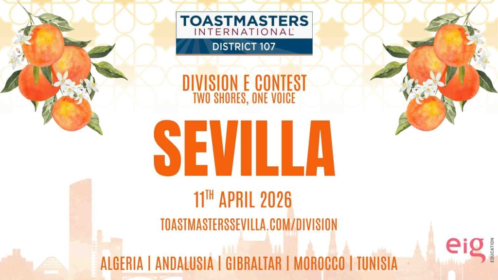 It is a great honor for Toastmasters Sevilla to host the Division E Contest 2026. We carry out this duty with excitement, professionalism, and joy as we welcome Toastmasters from across Division E in the final step before the District Contest.