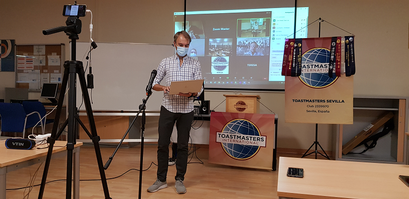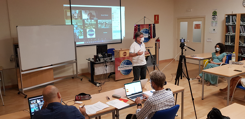 Esta sesión del día 1 arrancó con mucha fuerza. Toda la que nuestro flamante VP de Educación Antonio Gabriel aplicó al mazo, como toastmaster del día que era. Él ha tenido parte de culpa en que no hayamos evitado este primer día arrancando el siguiente miércoles de este mes que tiene cinco ¡Cuanto antes mejor!